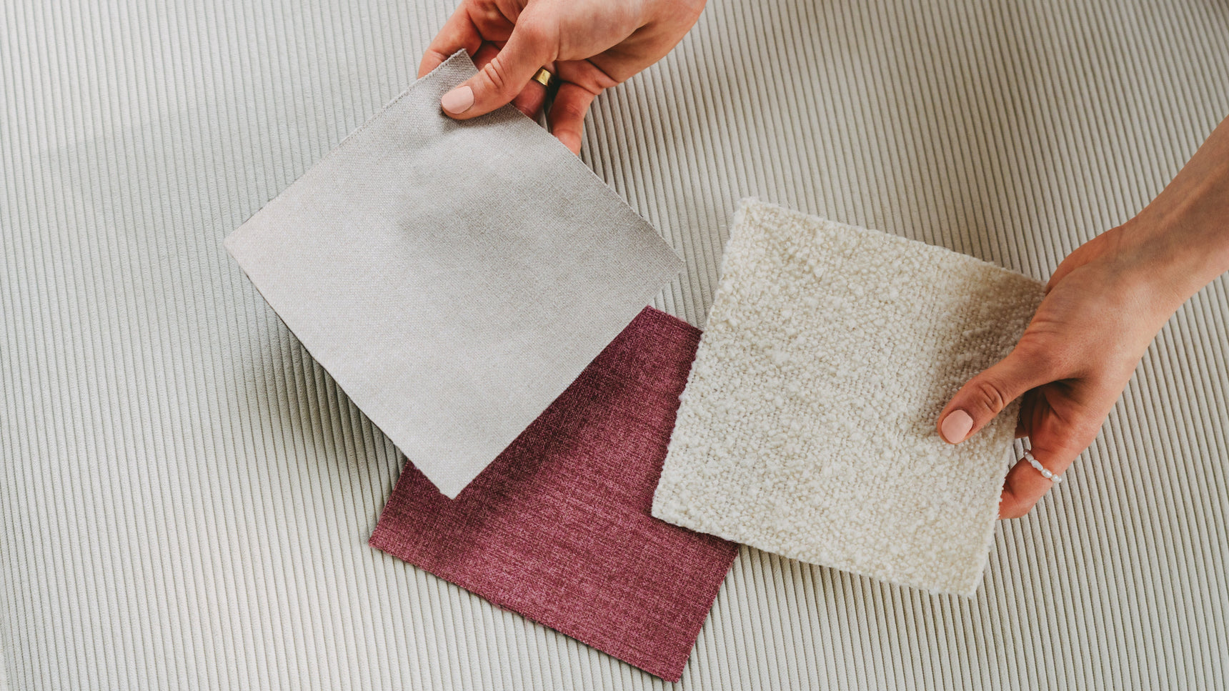 Fühlen, sehen, vergleichen. Entdecke deine Lieblingsstoffe bequem zu Hause - völlig kostenfrei.