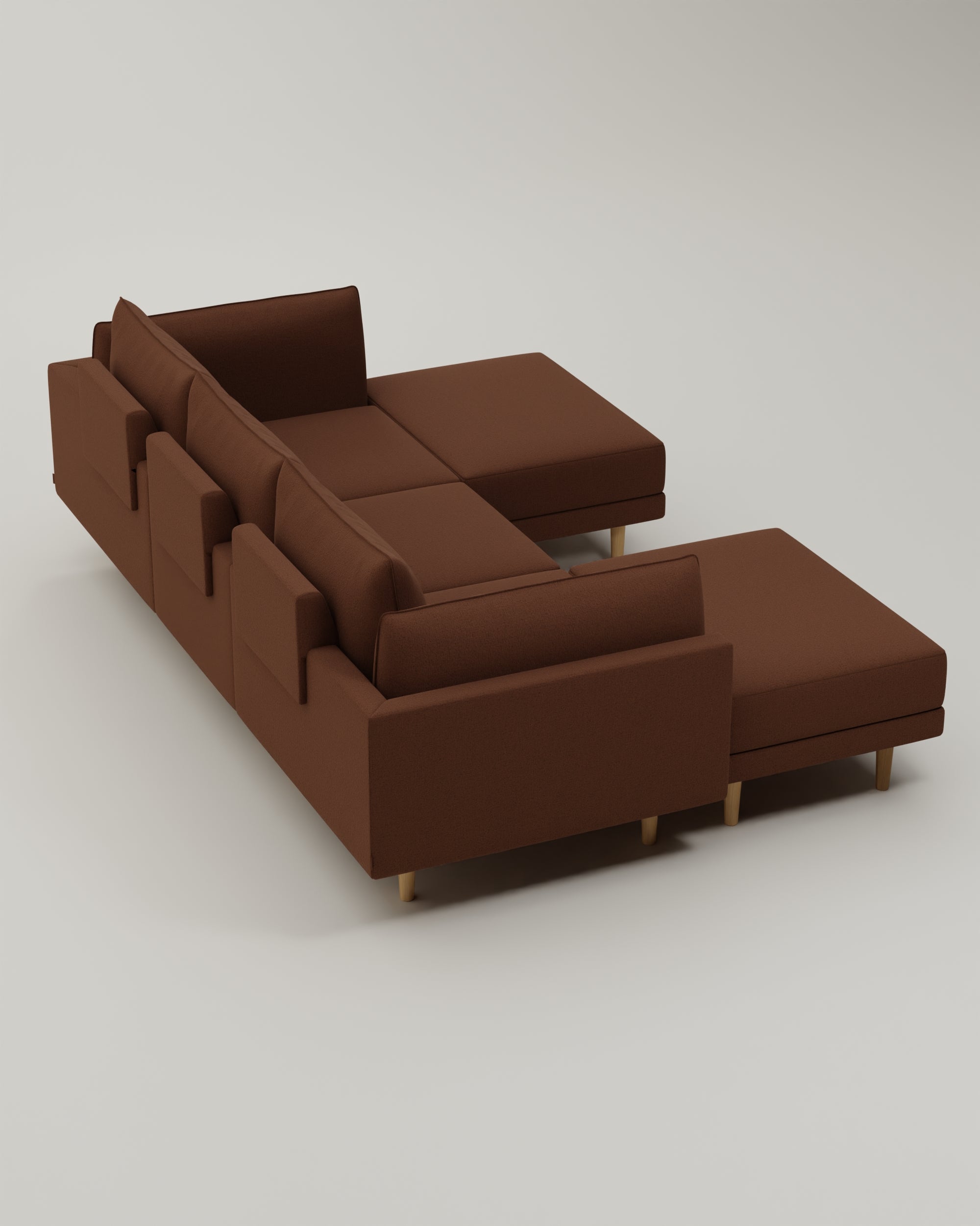 Modular sofa Donna U-shape with sleeping function | Tobacco-Linea / Wooden feet 18cm