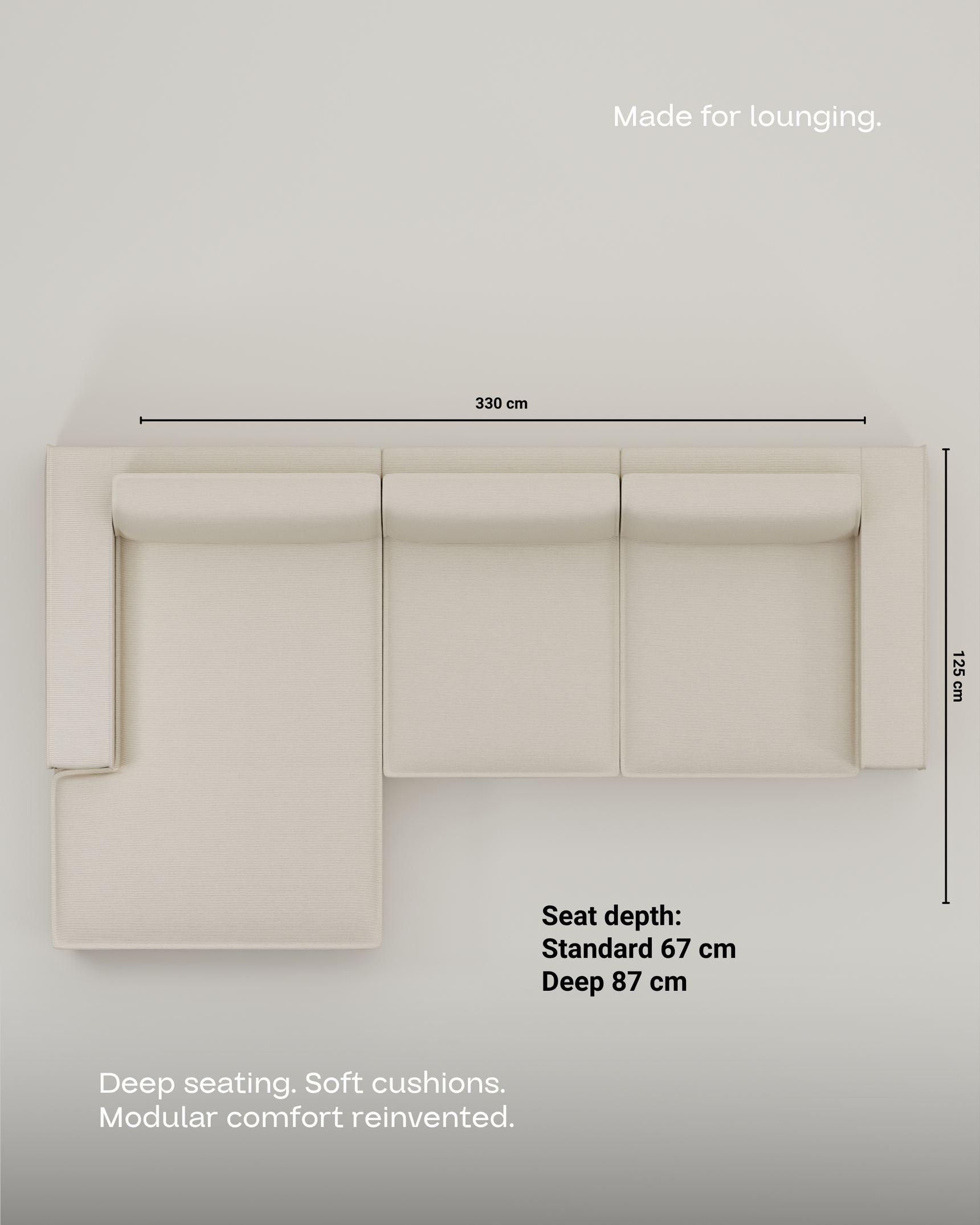 Deep sofa: 330 x 125 cm
