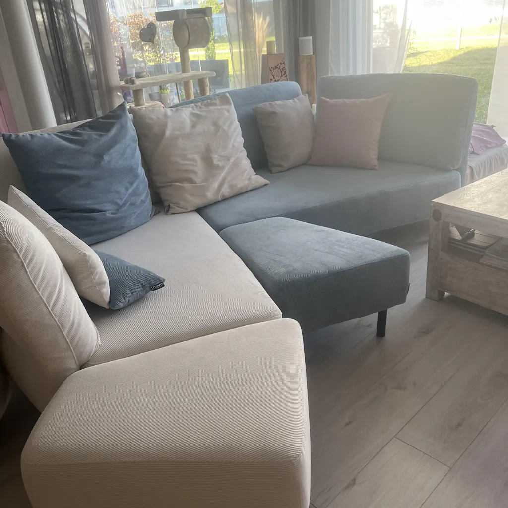 Die Lieferung erfolgte termingerecht. Freundliche Mitarbeiter, die kompetent und schnell unser Sofa montierten. Die Qualität und Verarbeitung ist perfekt, der Stoff super schön und bequem. Auch der zusätzliche Bezug ist wunderschön. Preis Leistung passt. Wir haben Livom schon weiter empfohlen. Das System mit Modulen und waschbaren Bezügen ist wirklich genial!