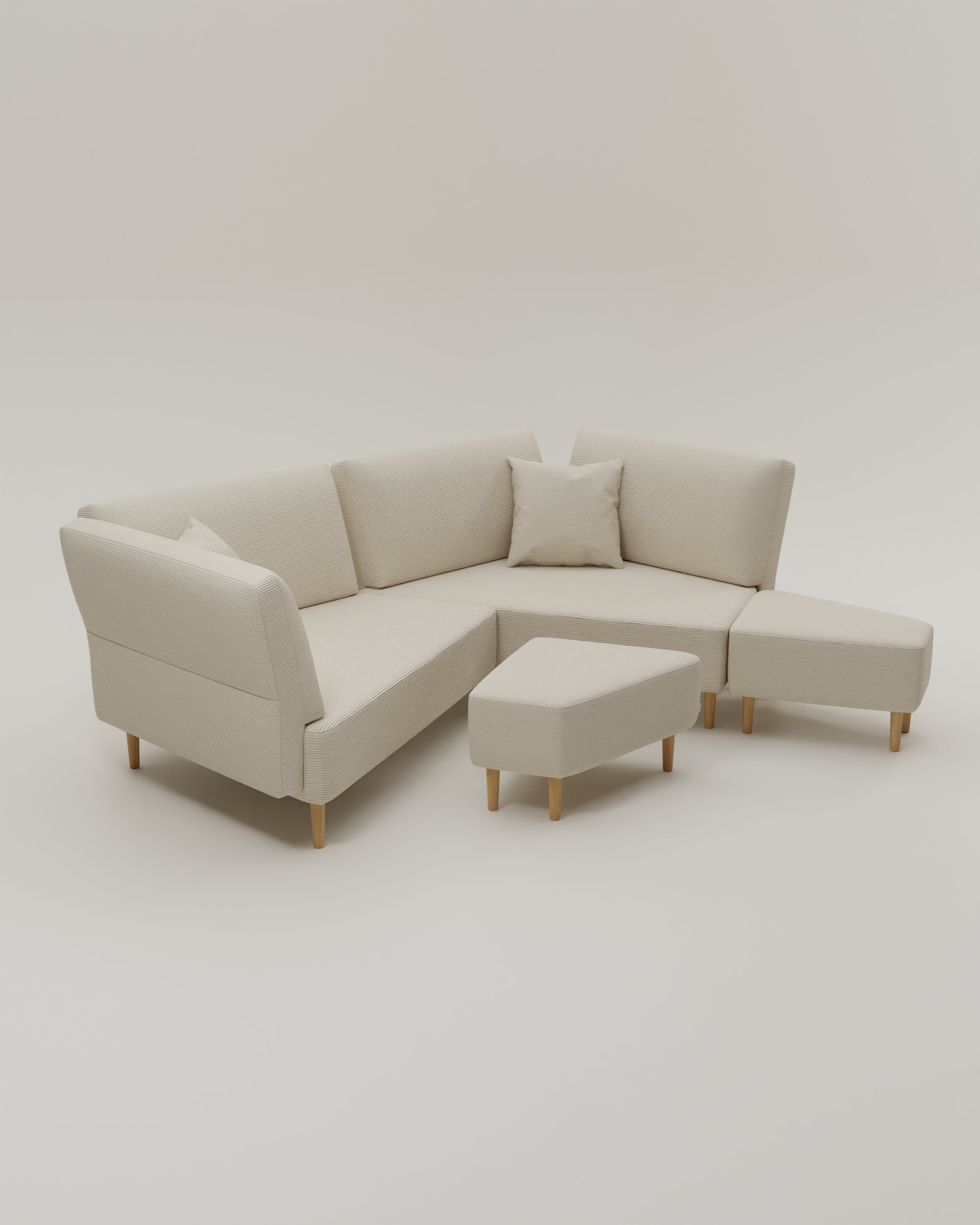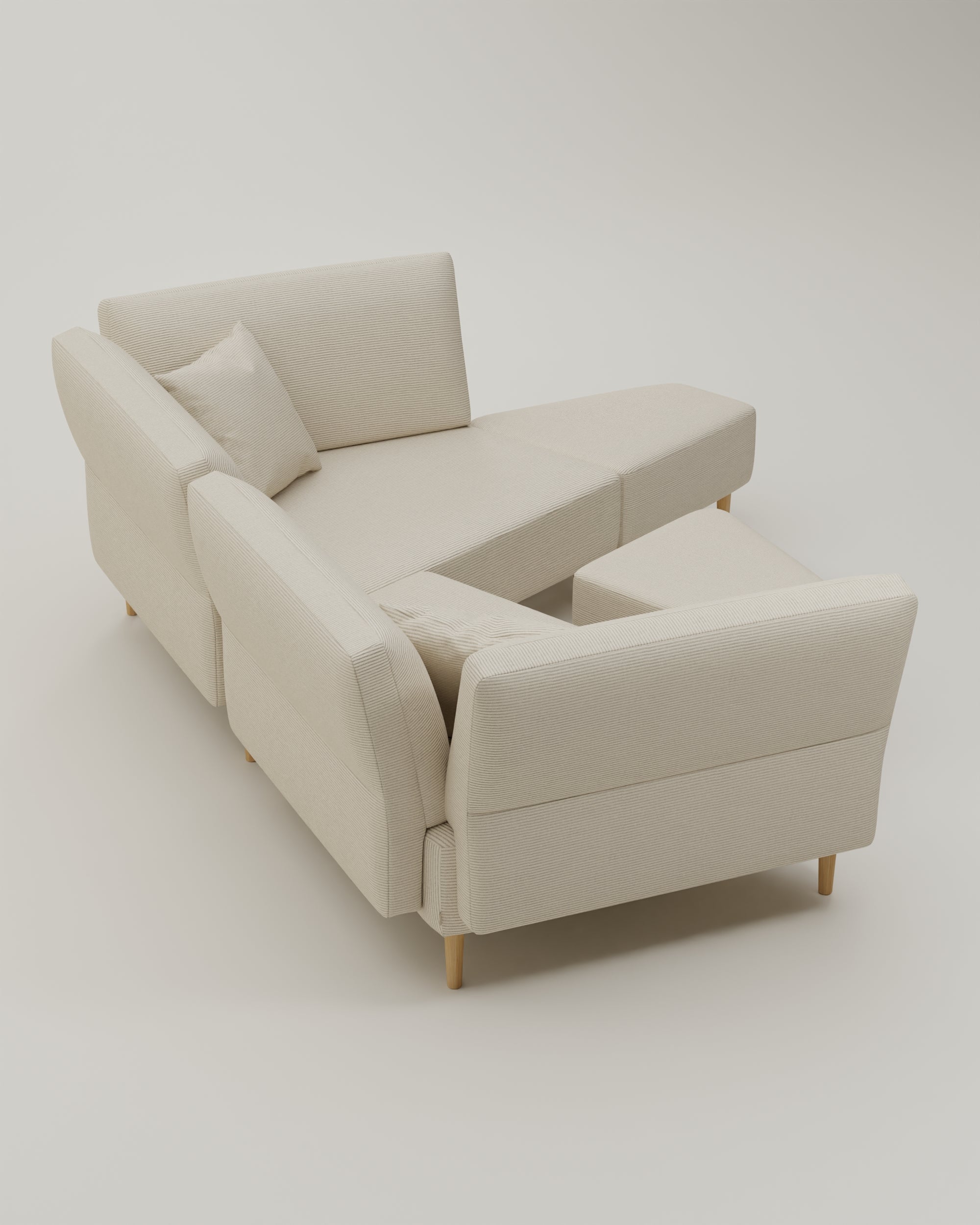 Das Sofa ist modular. Du kannst also alle Teile beliebig anordnen, umstellen und dir eine komplett neue Wohlfühllandschaft bauen. Egal ob Umzug oder Umbau, dein Sofa setzt dir keine Grenzen!