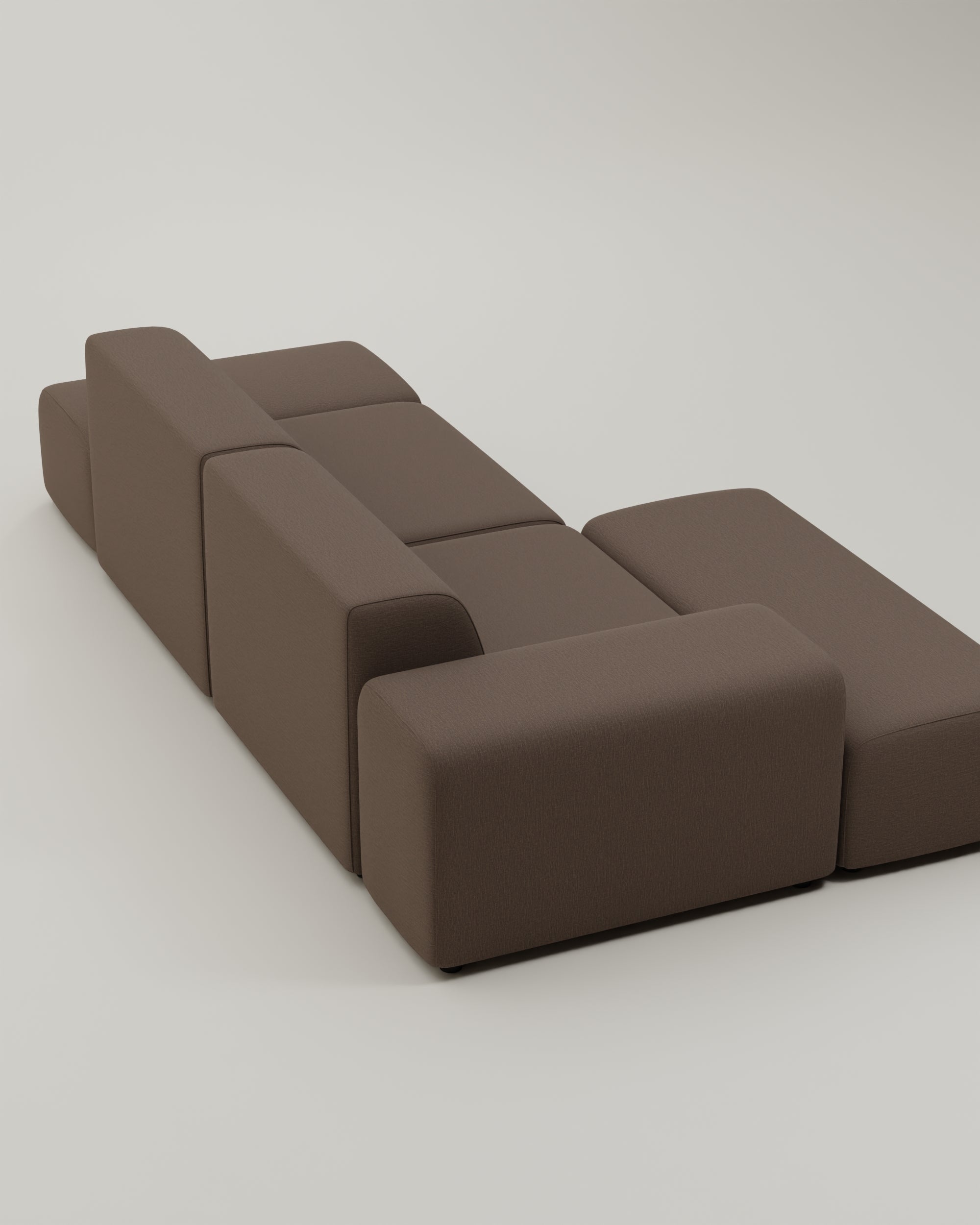 Das Sofa ist modular. Du kannst also alle Teile beliebig anordnen, umstellen und dir eine komplett neue Wohlfühllandschaft bauen. Egal ob Umzug oder Umbau, dein Sofa setzt dir keine Grenzen!