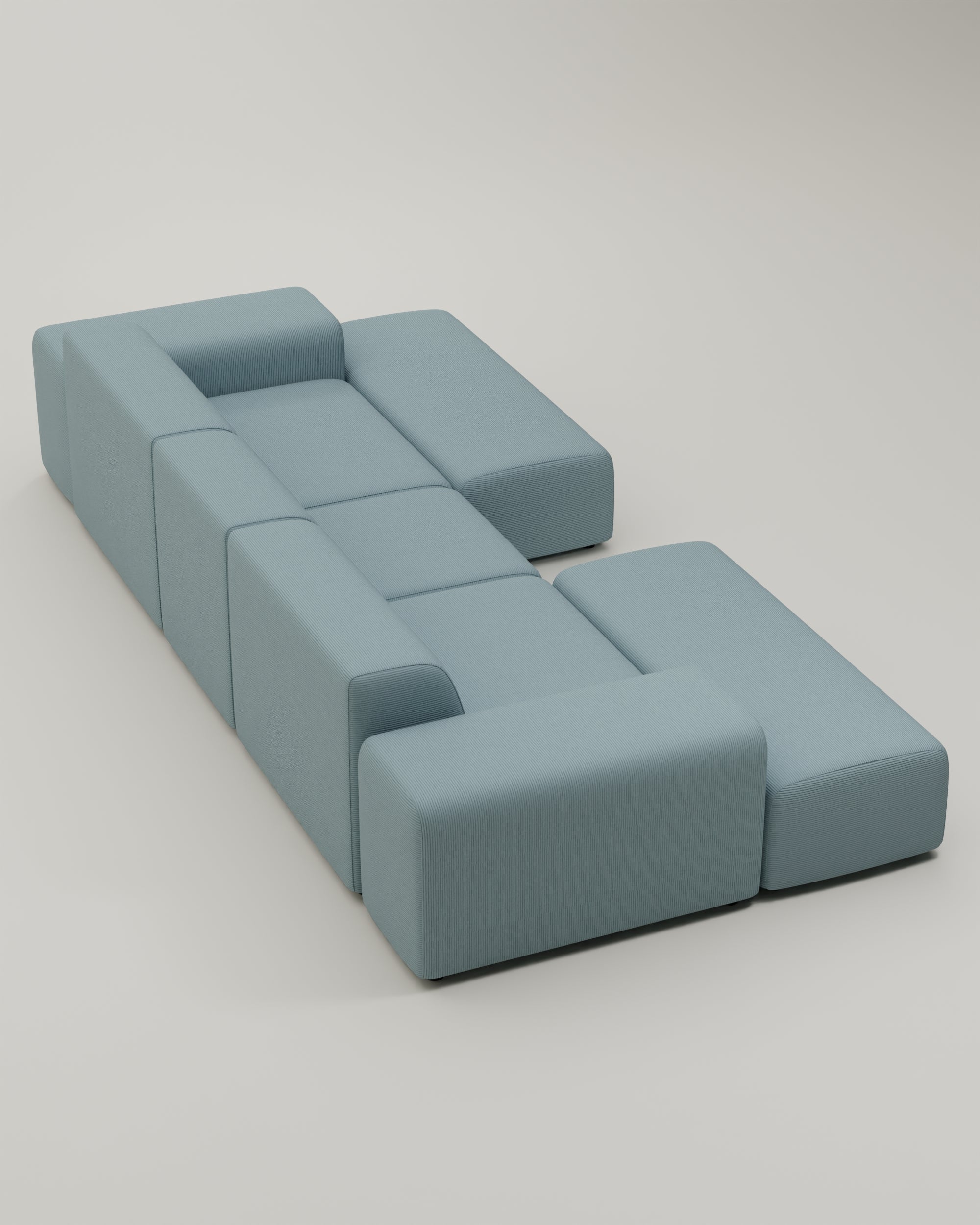 Das Sofa ist modular. Du kannst also alle Teile beliebig anordnen, umstellen und dir eine komplett neue Wohlfühllandschaft bauen. Egal ob Umzug oder Umbau, dein Sofa setzt dir keine Grenzen!