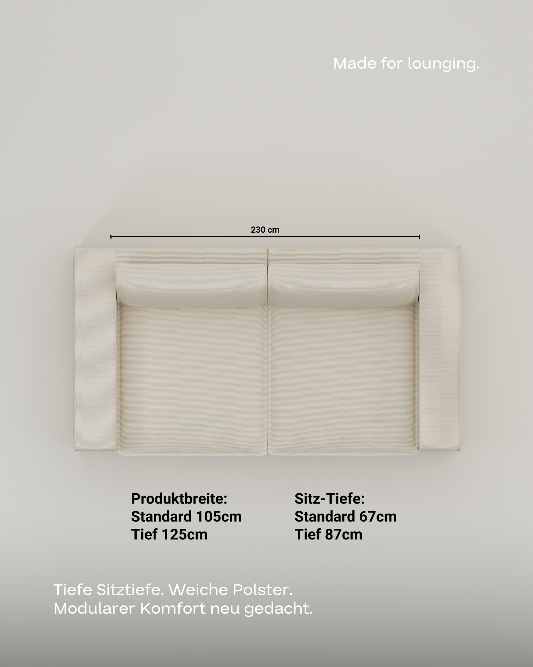 Das Sofa ist modular. Du kannst also alle Teile beliebig anordnen, umstellen und dir eine komplett neue Wohlfühllandschaft bauen. Egal ob Umzug oder Umbau, dein Sofa setzt dir keine Grenzen!